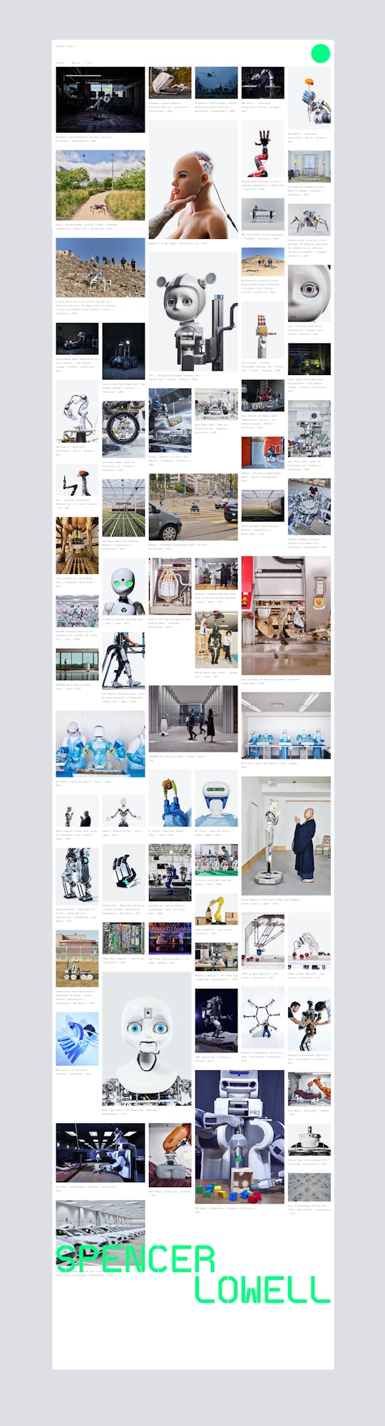 Central to spencerlowell.com is the bespoke, modular typeface LD_SPENCER_LOWELL, engineered to mirror Spencer’s precise, scientific photographic style. Its angular, geometric letterforms—each module crafted with exacting proportions—create a rigid yet flexible framework that underpins every page. The sharp, interlocking shapes not only reinforce the site’s underlying grid but also echo the structural clarity of Spencer’s images, ensuring that text and photography coalesce into a unified, rigorously balanced visual experience.